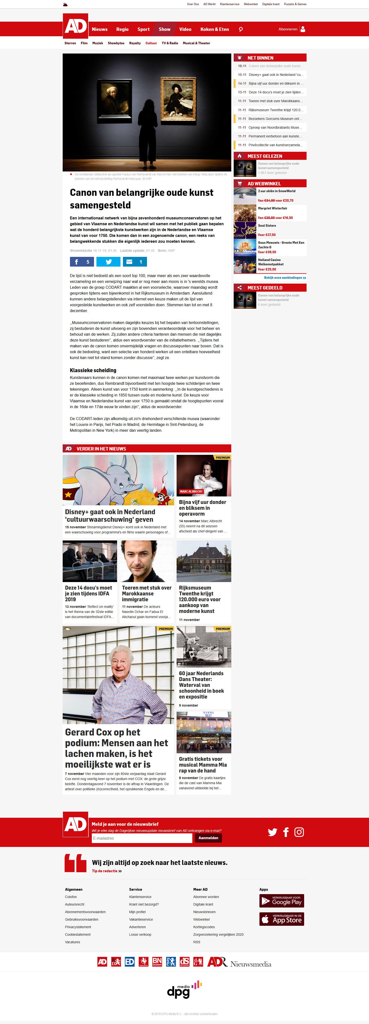 - Algemeen Dagblad, Canon van belangrijke oude kunst samengesteld, 18 November 2019