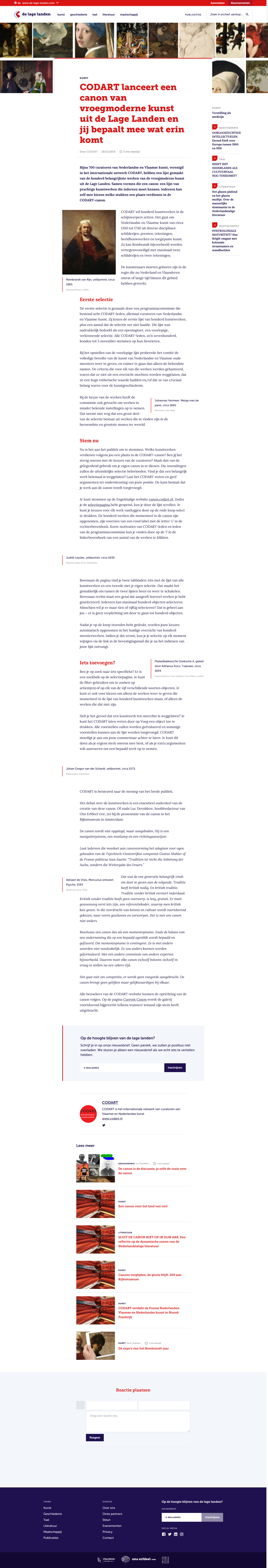 - The Low Countries, Cast Your Vote for the CODART Canon, also in Dutch as CODART lanceert een canon van vroegmoderne kunst uit de Lage Landen jij bepaalt mee wat erin komt in De Lage Landen