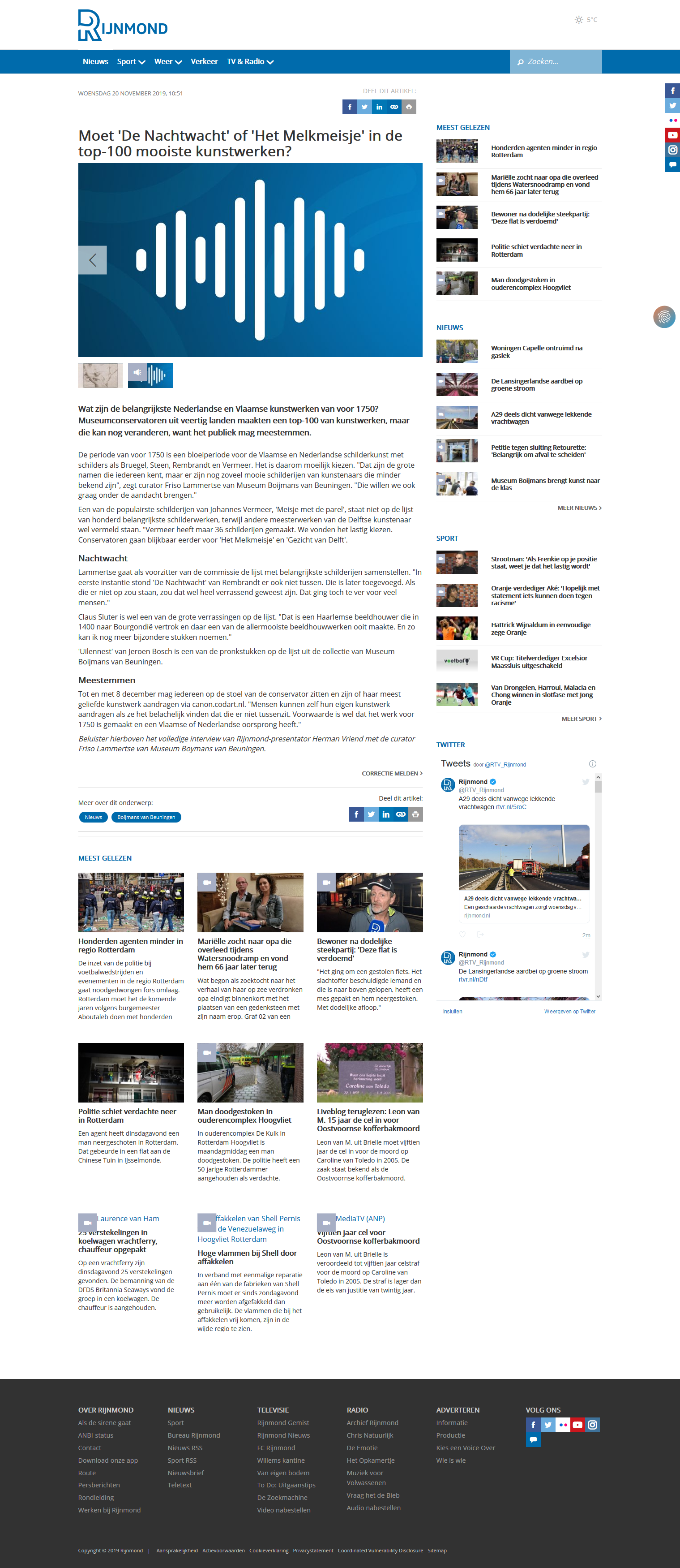 - RTV Rijnmond, Moet ‘De Nachtwacht’ of ‘Het Melkmeisje’ in de top-100 mooiste kunstwerken?, 20 November 2019 including an interview with Friso Lammertse on Radio Rijnmond (download mp3)